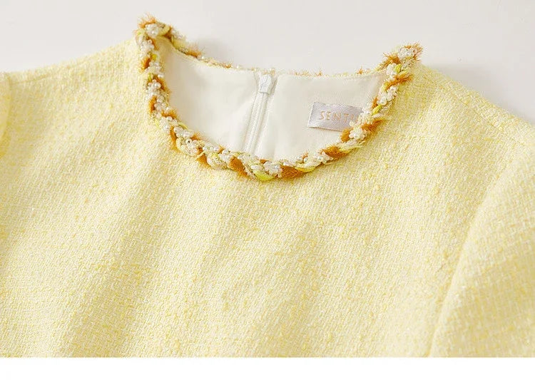 Tweed Short Sleeve Dress with Contrast Neckline